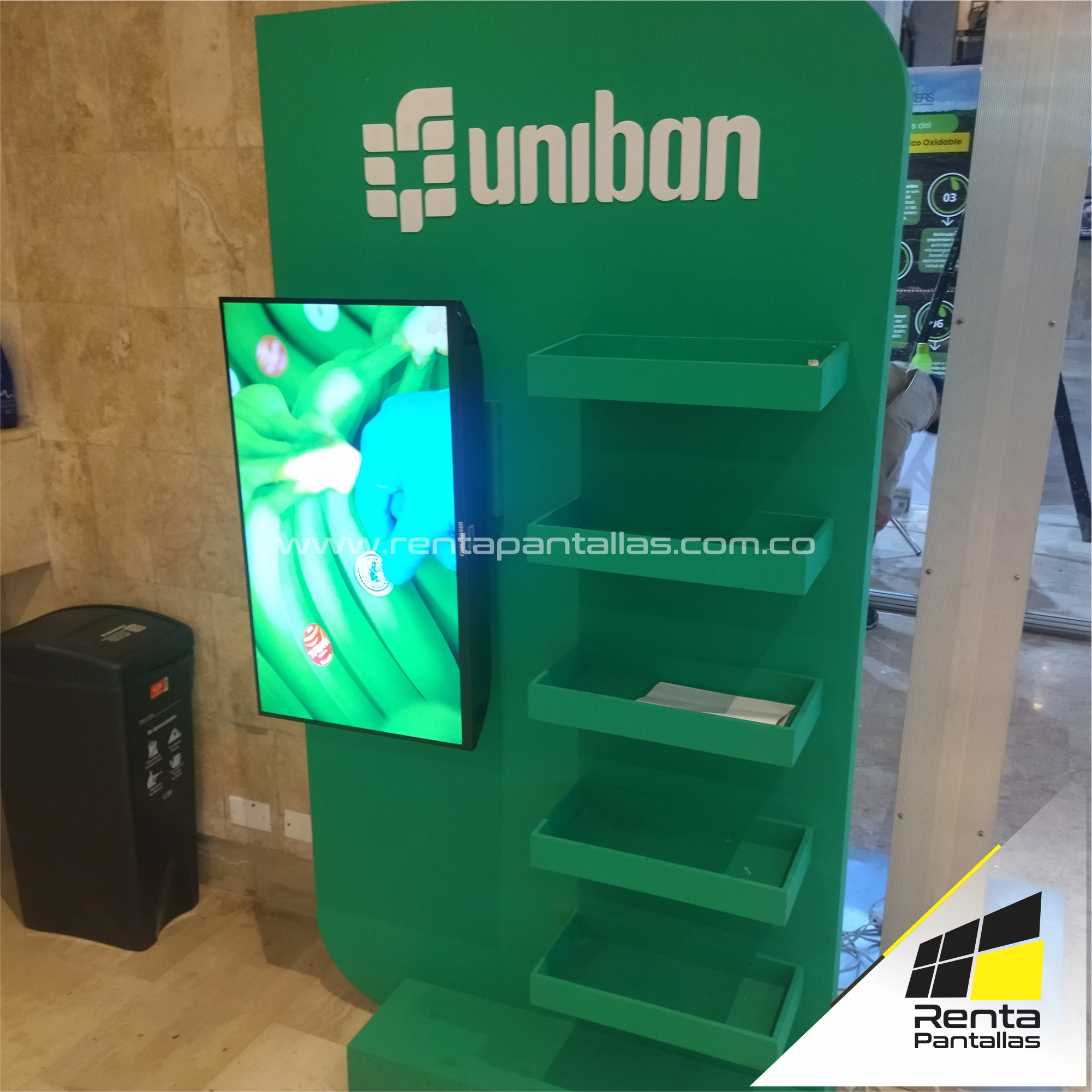 En Renta Pantallas Inc., ofrecemos pantallas de televisor de alta calidad para estructuras de exhibición de productos. Nuestras pantallas de alta resolución, disponibles en varios tamaños, se integran fácilmente en cualquier base y destacara cada detalle de tus productos. Con conectividad versátil y materiales duraderos, nuestras pantallas mejoran la interacción con los visitantes, permiten presentaciones dinámicas y elevan la percepción profesional de tu marca.